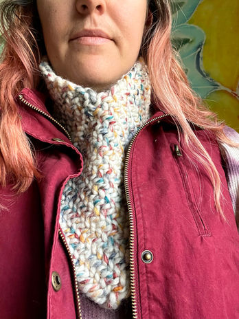 Work this warm and cozy scarf up in an afternoon for simple neck warmer you'll want to wear everyday. Made using the interlacing technique; a sprang variation that works up like weaving, except with no weft, this scarf will be thick and warm and guaranteed to keep the coldest wind out. Simple and yet very useful, you'll want to make more for all your friends!